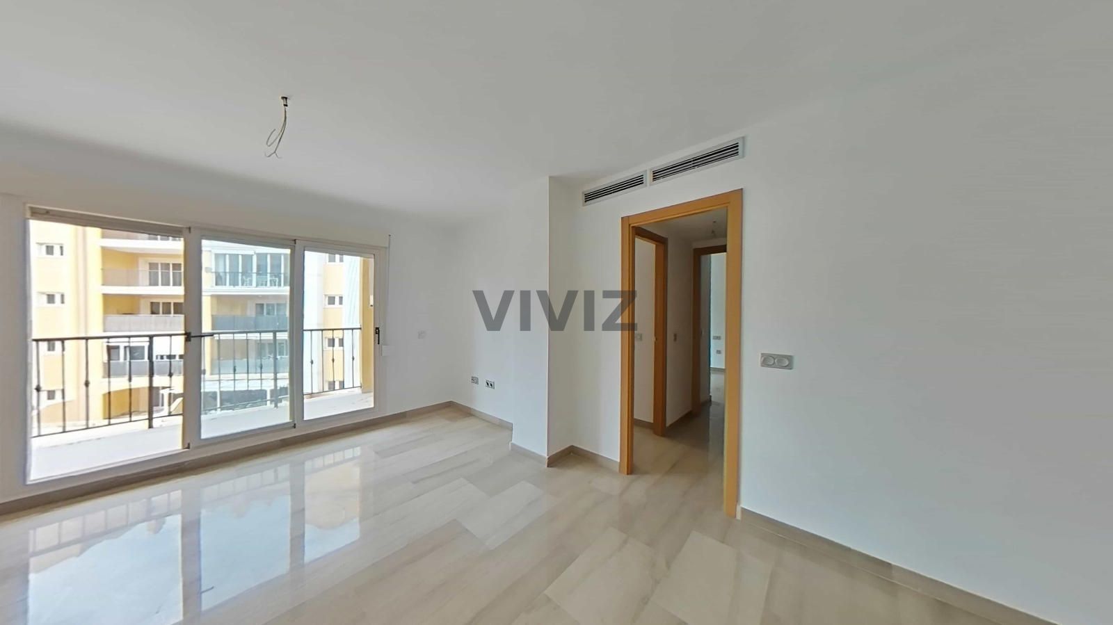 La vivienda cuenta con dos dormitorios exteriores, con armarios empotrados vestidos, dos baños completos, uno de ellos en suite, cocina independiente con posibilidad de integrarla al salón, y un salón-comedor luminoso con salida directa a una agradable terraza, ideal para disfrutar del clima mediterráneo.
